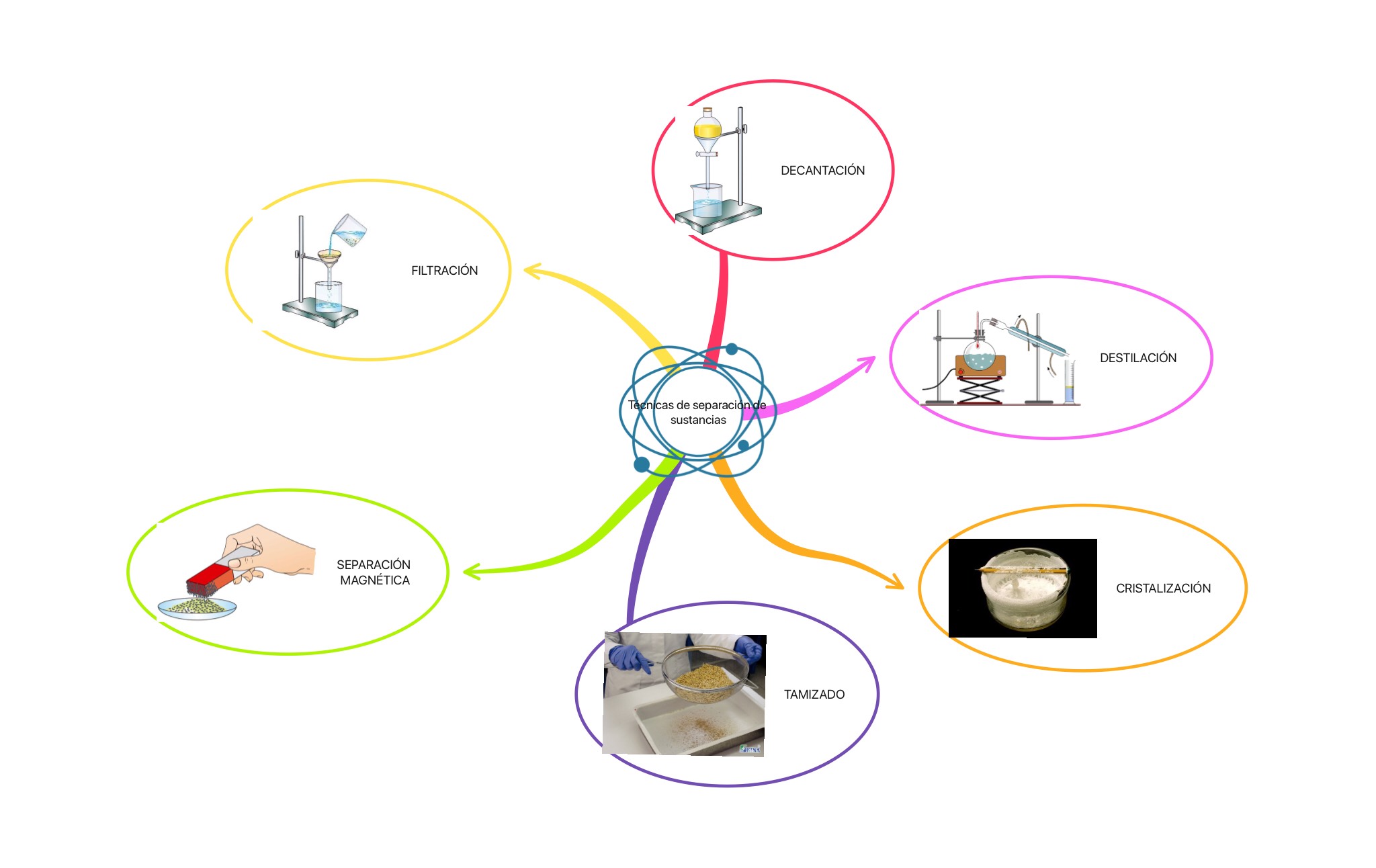 Finalmente, explicamos un pequeño esquema con las diferentes técnicas para separar las sustancias en las distintas mezclas, tanto homogéneas como heterogéneas.