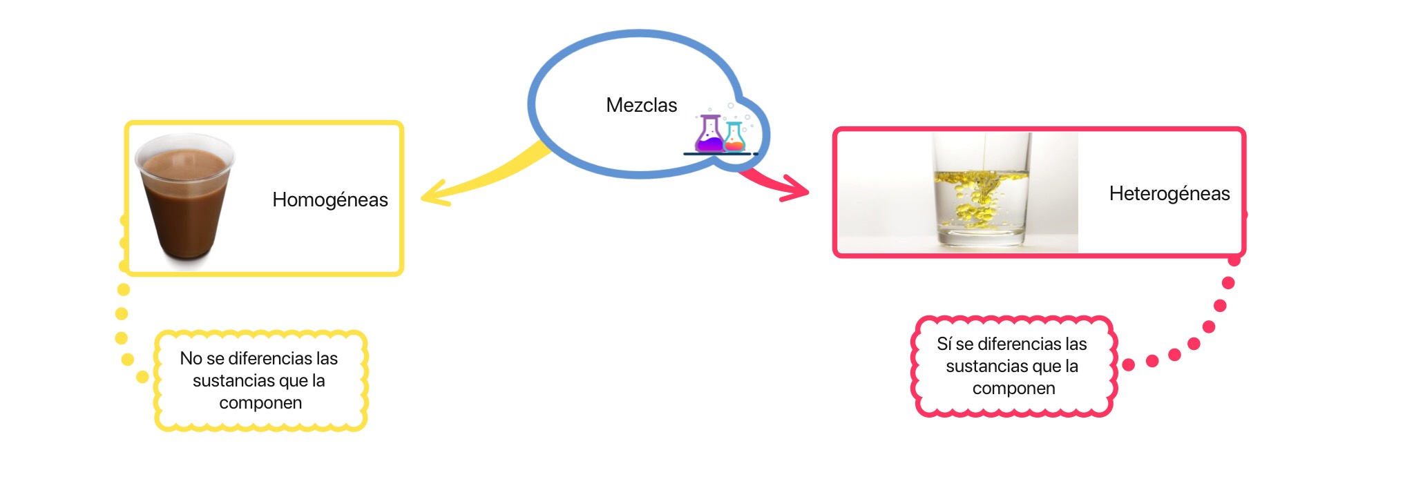 A continuación diferenciamos entre mezclas homogéneas y heterogéneas.